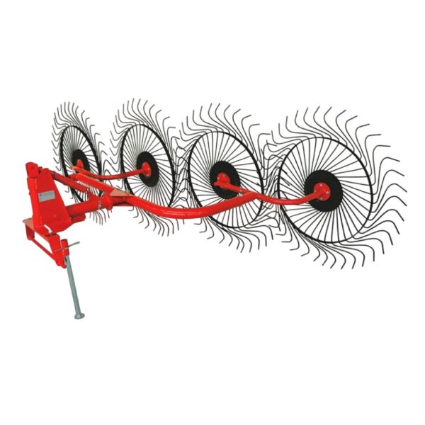 В состав оборудования входят четыре колеса с пальцами из стальной проволоки, предназначенной для ворошения и сгребания травы. Пальцы диаметром 7 миллиметров приварены к 10-миллиметровой стальной пластине, имеют высокую прочность и надежность. На каждом колесе диаметром 1,45 метра размещено по 40 пальцев. Общая ширина захватываемой полосы составляет 2,5 метра. Техника агрегируется с минитрактором мощностью не менее 15 лошадиных сил. В состав минитрактора должен входить вал отбора мощности, работающий на скорости 540 оборотов в минуту. Максимальная скорость движения при выполнении работ не может превышать 12 километров в час.
