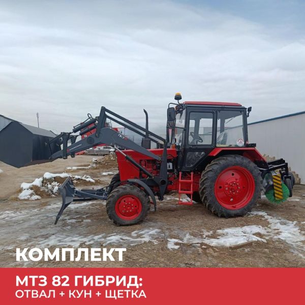 Комплект трактор МТЗ 82 Беларус гибрид с отвалом, куном и щеткой