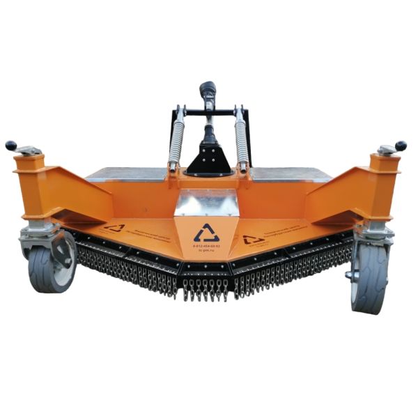 Косилка навешивается на заднюю трехточечную навеску трактора и работает от ВОМ. Изделие оснащается 3 (тремя) роторами по 2 (два) обоюдоострых ножа из высокопрочной стали на каждом.