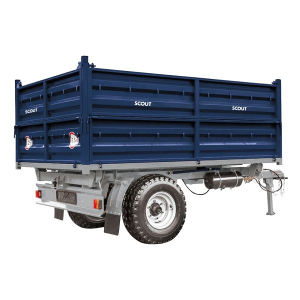 Одноосный тракторный прицеп Scout 1ПТС-3.5 предназначен для транспортировки груза до 3,5 тонн. Прицеп рассчитан на перевозку строительных материалов и сельскохозяйственных грузов. Конструкция прицепа предусматривает трёхстороннюю разгрузку и самосвальную выгрузку с двух сторон. Высокие борты защищают груз от падения.